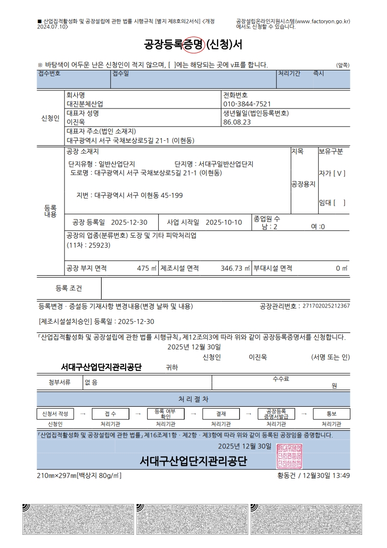 2공장 공장등록증