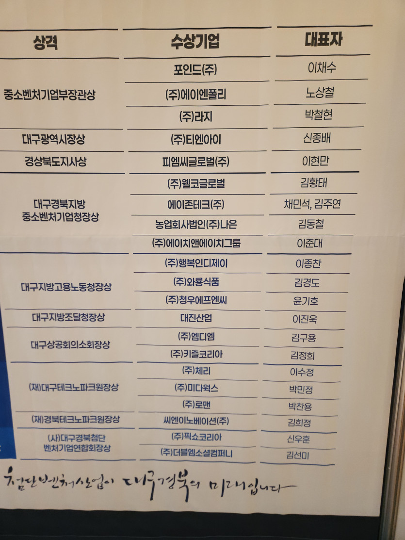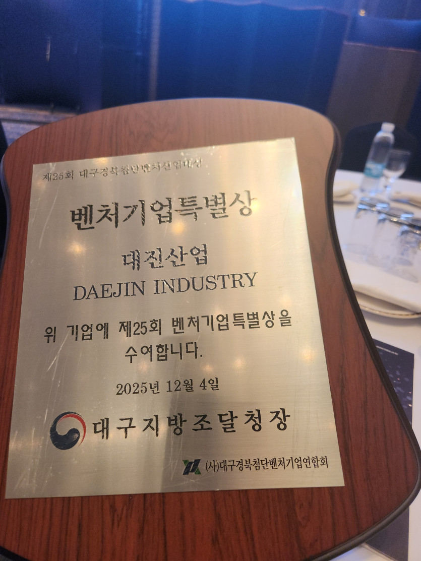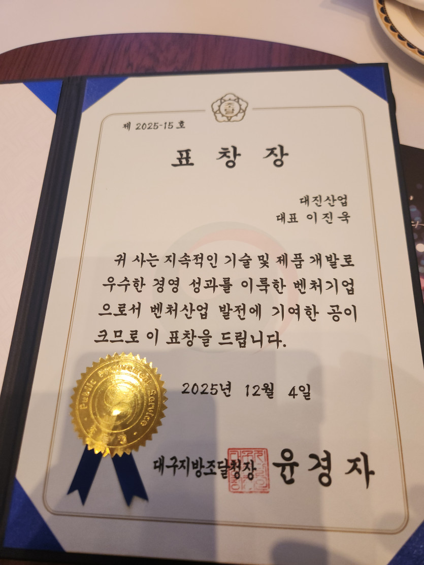 대구지방조달청장상 페이지 정보 작성자 최고관리자 댓글 0건 조회 13회 작성일 25-12-05 11:02 목록 본문 이전글제12회 대구.경북 소상공인 .중소.벤처기업 대축전 25.12.05 다음글대구국제자동화기기전 전시회 참가 (25.11.18~25.11.21) 25.11.19 댓글 0 댓글목록 등록된 댓글이 없습니다.