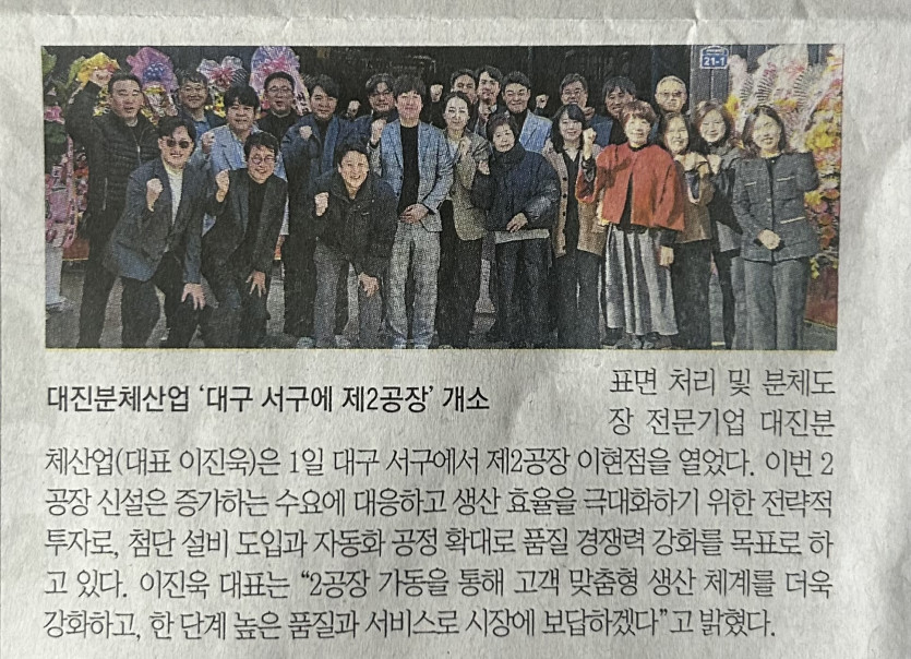 2공장 개소 신문기사 페이지 정보 작성자 최고관리자 댓글 0건 조회 23회 작성일 26-01-26 16:22 목록 본문 이전글연말 신장협의회 기부 26.01.26 다음글제12회 대구.경북 소상공인 .중소.벤처기업 대축전 25.12.05 댓글 0 댓글목록 등록된 댓글이 없습니다.