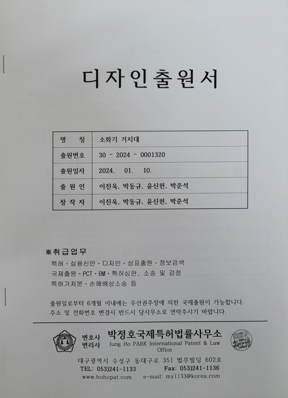 직원들이 만든 디자인 특허 페이지 정보 작성자최고관리자 댓글 0건 조회 268회 작성일 24-01-16 14:43 본문 목록 이전글이전글제목입니다. 17.07.14 다음글다음글제목입니다. 17.07.14 댓글목록 댓글목록 등록된 댓글이 없습니다.